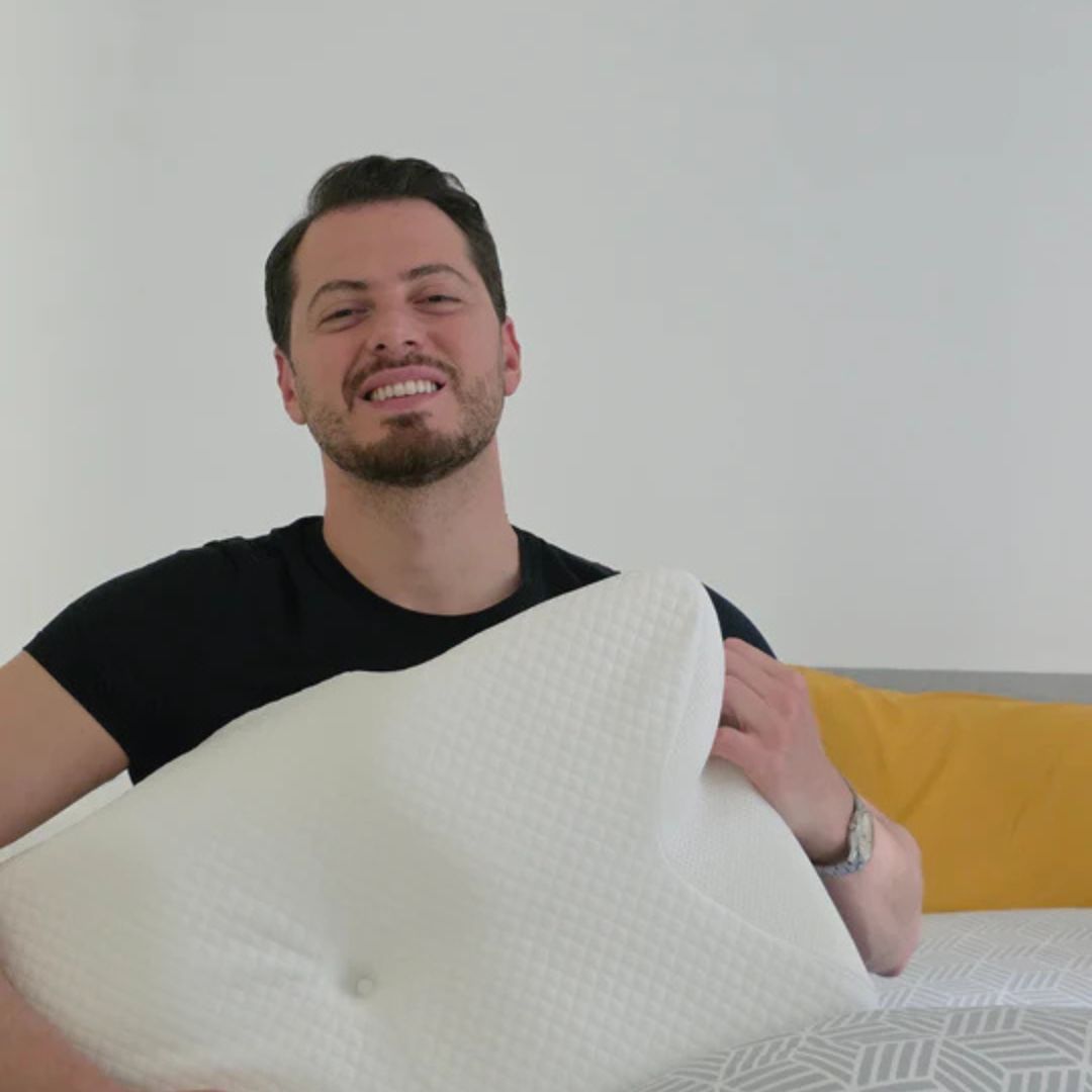ReAlign Pillow™ è diventato indispensabile. Prima mi giravo continuamente nel sonno, ora mi addormento e mi risveglio nella stessa posizione, riposato e senza dolori alla schiena.