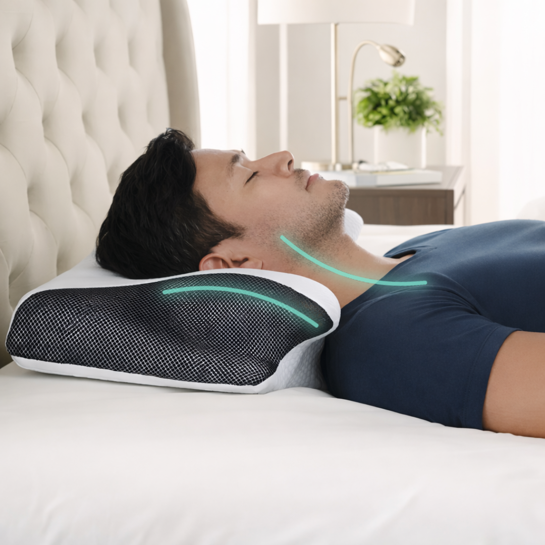 ReAlign Pillow™ è diventato indispensabile. Prima mi giravo continuamente nel sonno, ora mi addormento e mi risveglio nella stessa posizione, riposato e senza dolori alla schiena.